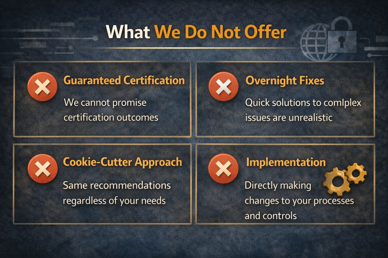 Before committing to certification or audit schedules, establish a clear understanding of where you stand and what is required.